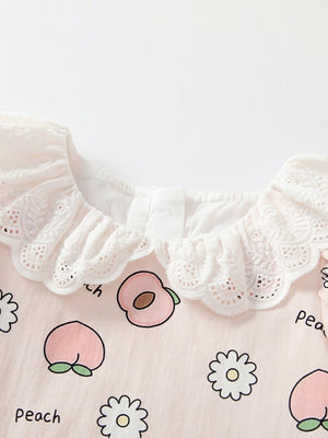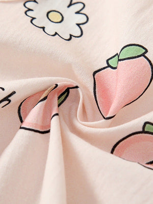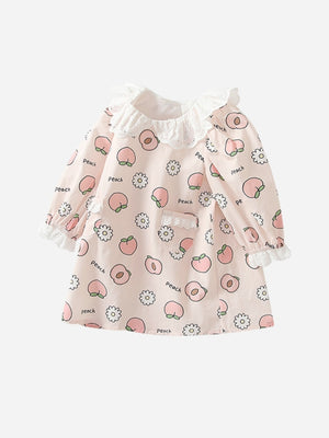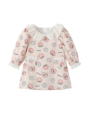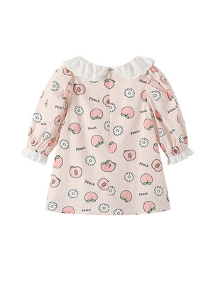 Pink Round Neck Casual A-Line Graphic Long Sleeves Knee Length Cotton Dress