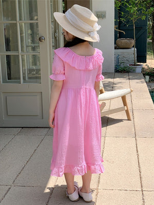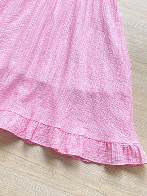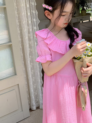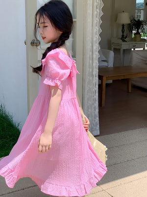 Pink Round Neck Casual A-Line Solid Cotton Maxi Dresses