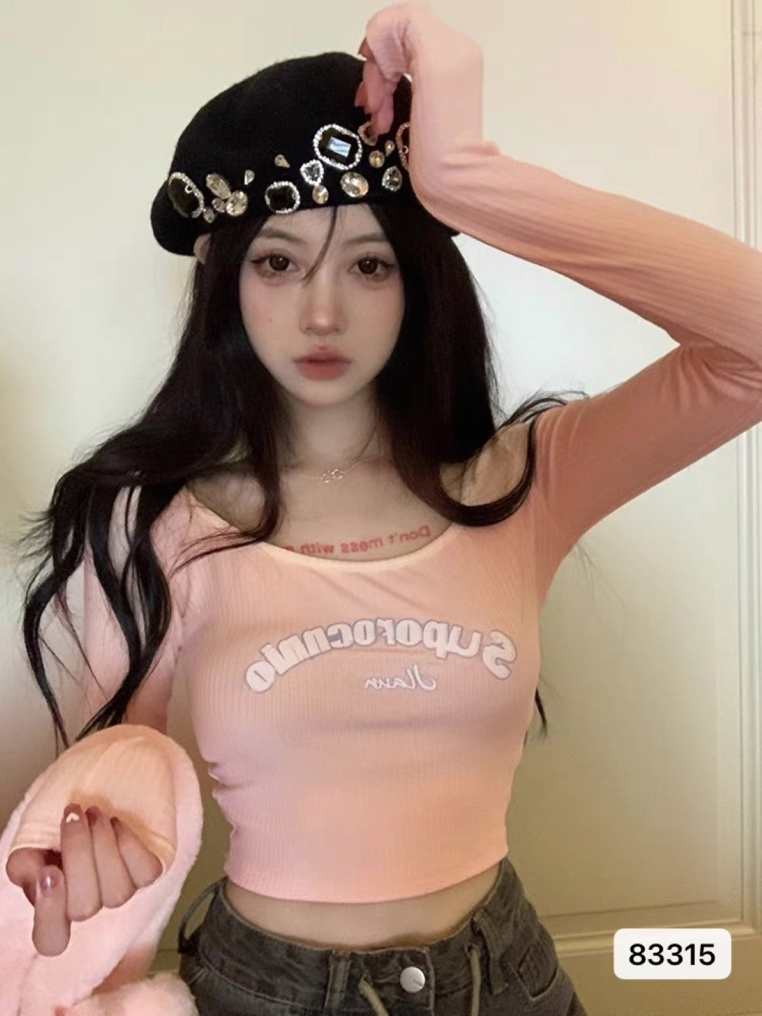 Pink Round Neck Long Sleeves Typography Regular Sleeves Viscose Rayon Top