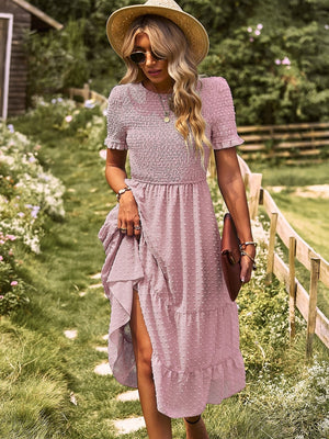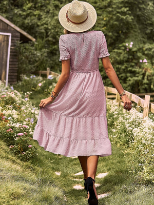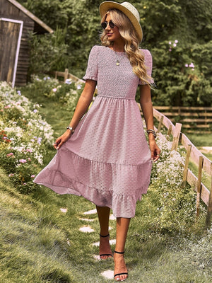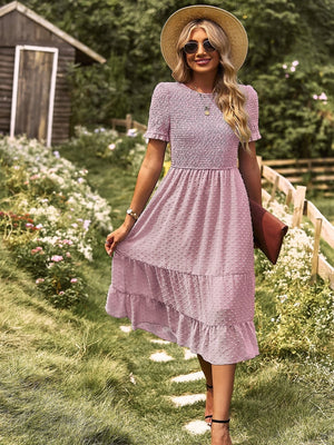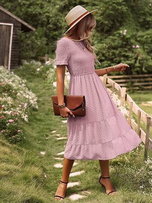 This elegant A-Line dress is made from high-quality pink polyester, perfect for any occasion. The flattering silhouette and versatile color make it a must-have in any wardrobe. The dress features a classic round neck neckline and a comfortable fit that will make you feel confident and stylish.