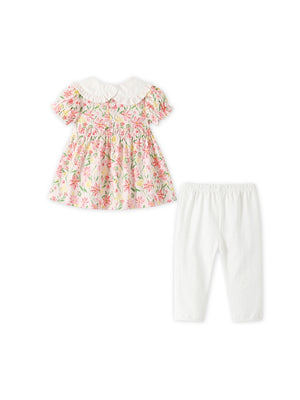 Pink Round Neck Short Sleeves Printed Top & Trousers Pure Cotton Set