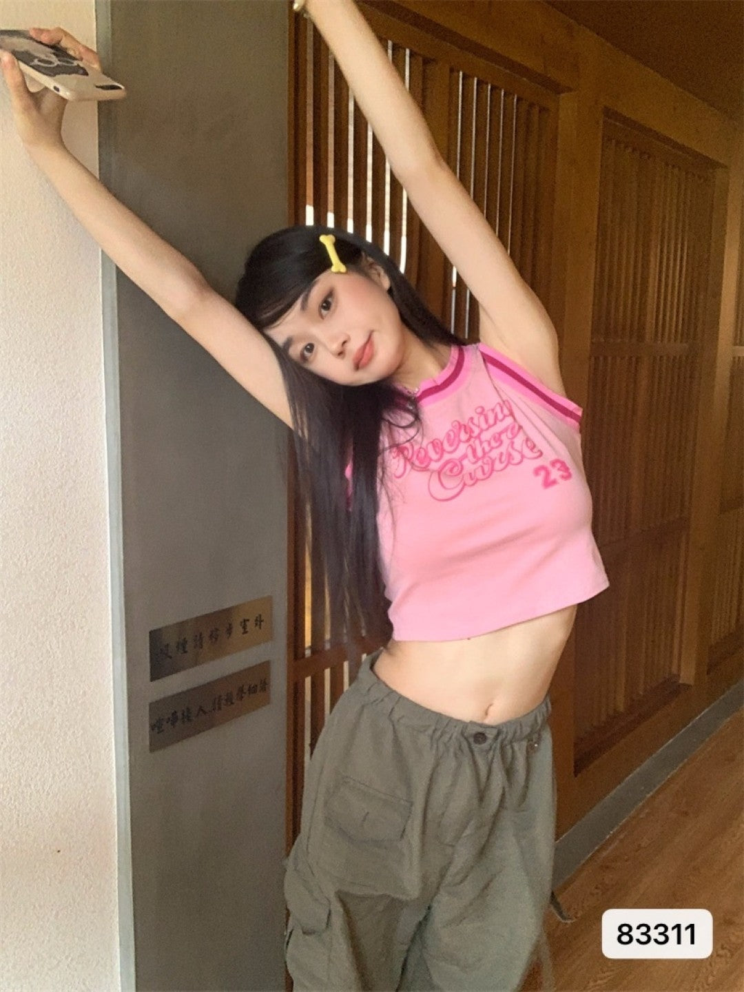 Pink Round Neck Sleeveless Typography Top