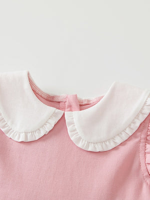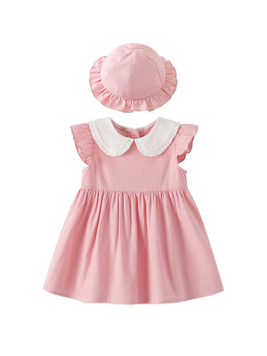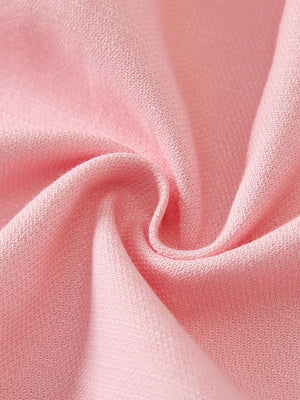 Pink Round Neck Solid A-Line Short Sleeves Cotton Knee Length Dress