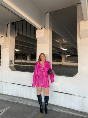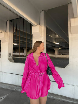 Embrace your feminine side and turn heads with our pink shirt collar a-line solid long sleeves above knee polyester dress. Crafted from high-quality polyester, this dress offers a comfortable and lightweight feel, perfect for any occasion.
