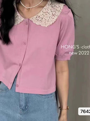 Pink Shirt Collar Short Sleeves Solid Regular Sleeves Viscose Rayon Top