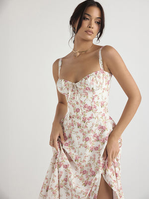 Pink Shoulder Straps A-Line Floral Sleeveless Maxi Polyester Dress