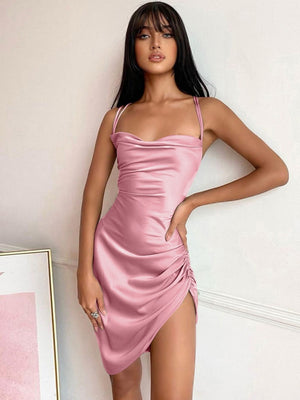 This Pink Shoulder Straps Bodycon Sleeveless Solid Above Knee Polyester Dress is ideal for any special event. The elegant design and bodycon fit highlight your curves, with the details adding a touch of allure. Crafted from high-quality polyester fabric, this dress is both comfortable and chic.