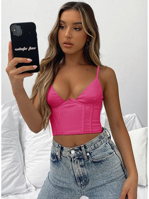 Pink Shoulder Straps Sleeveless Polyester Crop Top