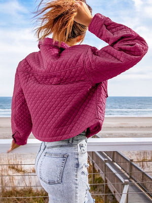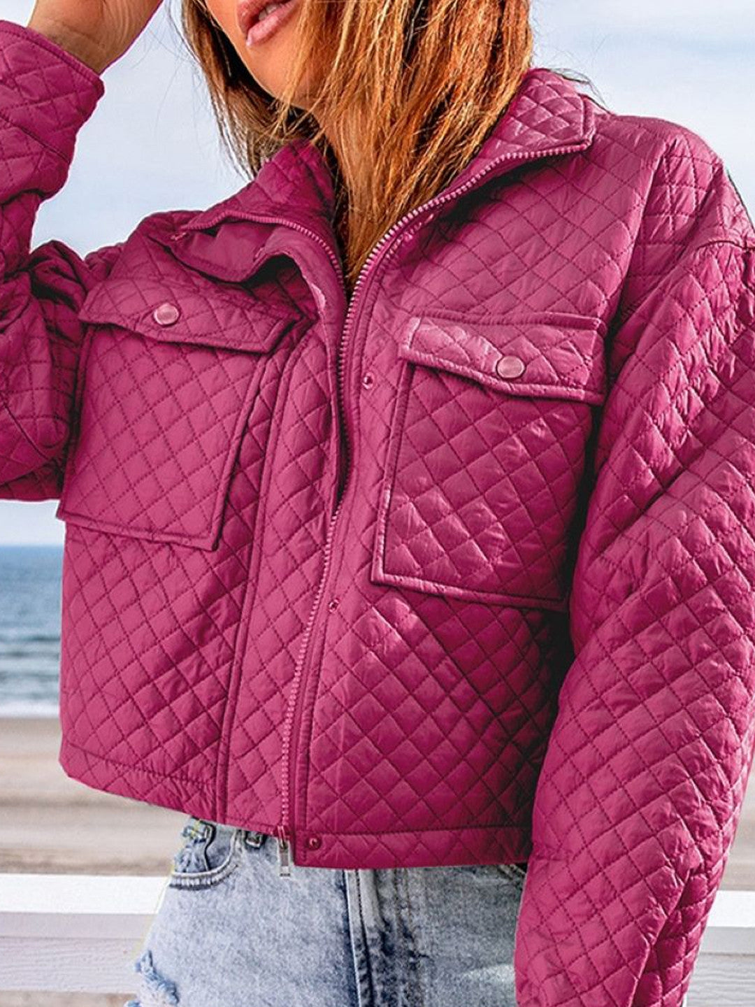 Pink Spread Collar Long Sleeves Solid Polyester Open Front Jacket