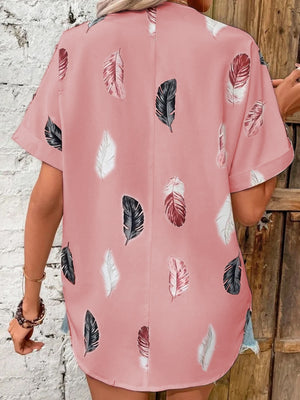 Pink V-Neck Short Sleeves Printed Polyester Top