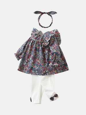Purple Boat Neck Long Sleeves Cotton Blend Top & Trousers Set