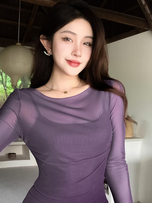 Whether you're going to a party, a casual outing, or a special event, this Purple Round Neck Long Sleeves Clothing Set is a must-have addition to your wardrobe.