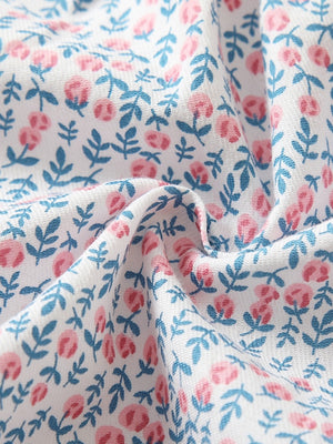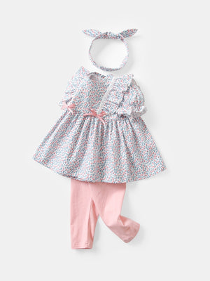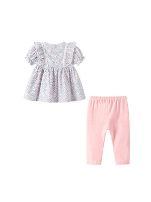 Purple Round Neck Short Sleeves Printed Top & Trousers Pure Cotton Set