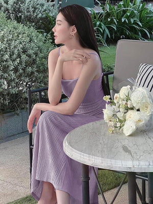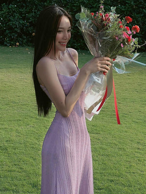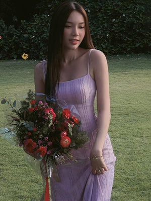 Purple Shoulder Straps Solid Sleeveless Maxi Bodycon Polyester Dress