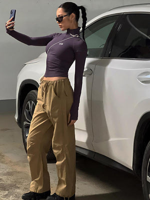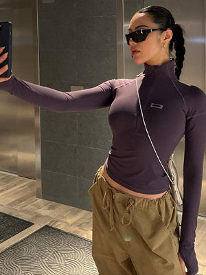 The purple v-neck long sleeves solid polyester top is figure-flattering and feminine. The shoulder straps neckline create an elegant silhouette, while the stretchy fabric provides all-day comfort.