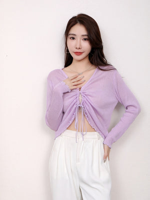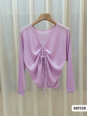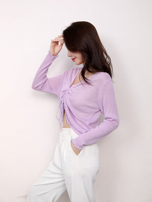 Purple V-Neck Long Sleeves Solid Top