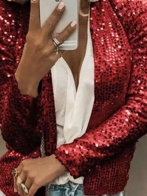 Red Collarless Long Sleeves Solid Polyester Open Front Jacket