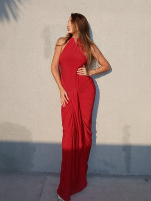 Make a bold statement with our Red Elegant One Shoulder Maxi Dress. Featuring a sleek, body-hugging design with a graceful draped tie detail, this dress is the perfect blend of sophistication and allure.