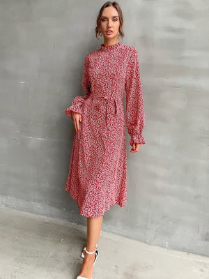 This elegant A-Line dress is made from high-quality red polyester, perfect for any occasion. The flattering silhouette and versatile color make it a must-have in any wardrobe. The dress features a classic high neck neckline and a comfortable fit that will make you feel confident and stylish.