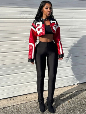 Red Mandarin Collar Long Sleeves Printed Polyester NA