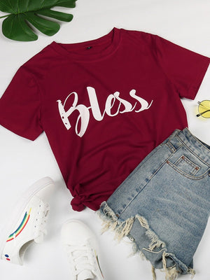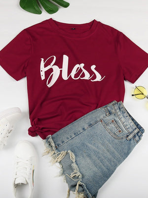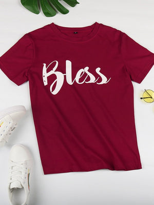 Red Round Neck Graphics Short Sleeves Cotton Top