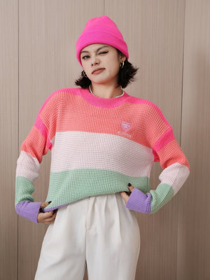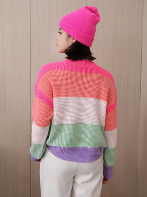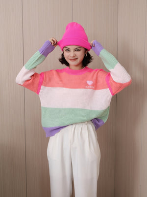 Red Round Neck Long Sleeves Horizontal Stripes Top