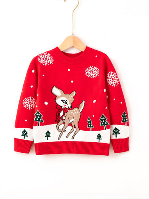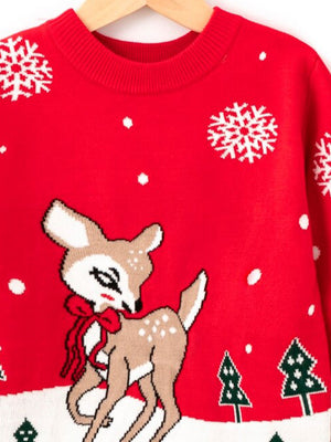 Red Round Neck Printed Long Sleeves Casual Pullover Viscose Rayon Sweater