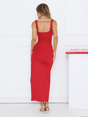 Elegant Red Sleeveless Maxi Dress with Side Slit