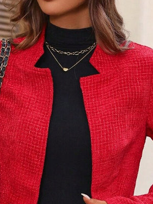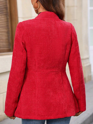 Red Solid Shirt Collar Long Sleeves Polyester Top