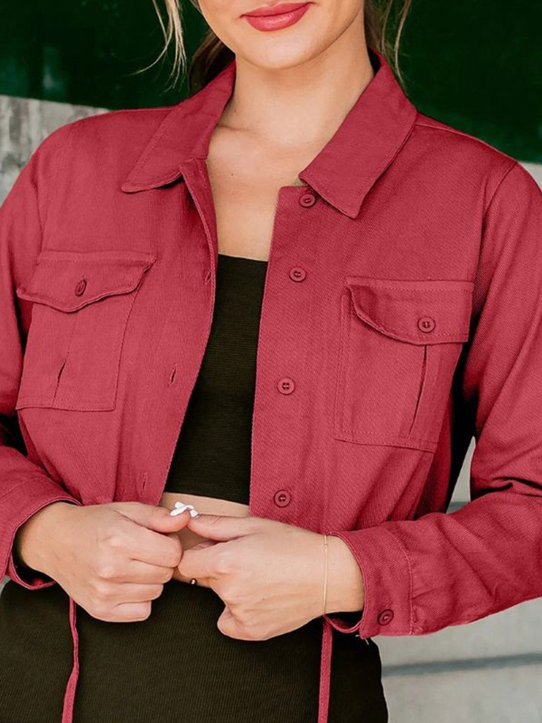 Red Spread Collar Long Sleeves Solid Polyester NA