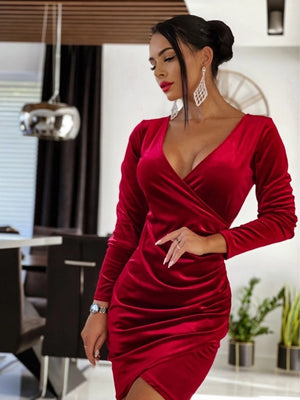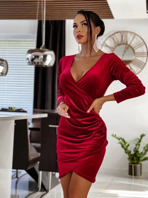 This Red V-Neck Bodycon Long Sleeves Solid Above Knee Polyester Dress is ideal for any special event. The elegant design and bodycon fit highlight your curves, with the details adding a touch of allure. Crafted from high-quality polyester fabric, this dress is both comfortable and chic.
