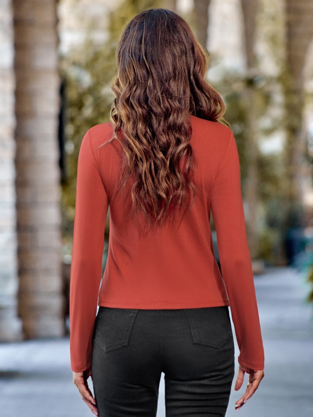 Introducing our Red V-Neck Long Sleeve Polyester Top, a stylish and versatile addition to your wardrobe. Made from high-quality polyester fabric, this top offers a comfortable and breathable fit. The v-neck design adds a touch of elegance, while the black color provides a timeless and sophisticated look.