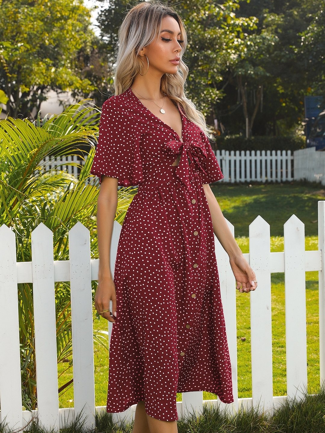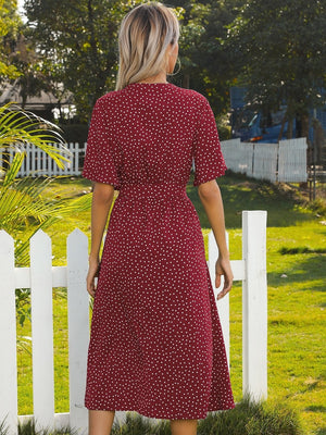 This elegant A-Line dress is made from high-quality red polyester, perfect for any occasion. The flattering silhouette and versatile color make it a must-have in any wardrobe. The dress features a classic v-neck neckline and a comfortable fit that will make you feel confident and stylish.