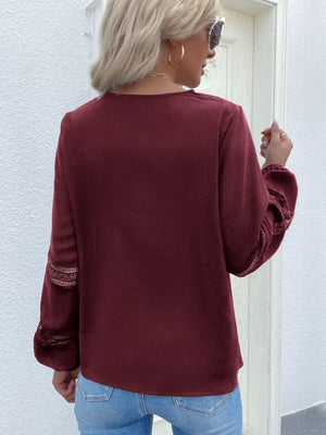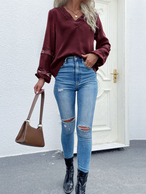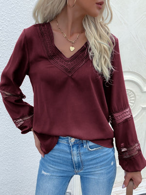 Introducing our Red V-Neck Solid Long Sleeves Polyester Top, a stylish and versatile addition to your wardrobe. Made from high-quality polyester fabric, this top offers a comfortable and breathable fit. The v-neck design adds a touch of elegance, while the black color provides a timeless and sophisticated look.