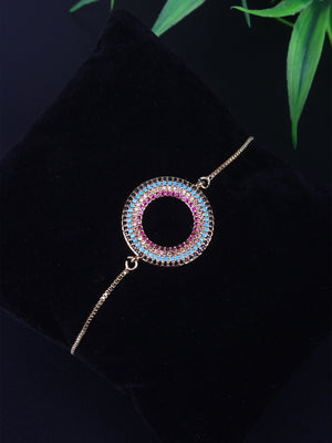 Rose Gold & Blue Brass Cubic Zirconia Rose Gold-Plated Handcrafted Charm Bracelet