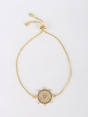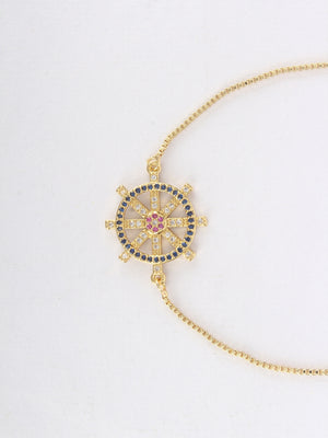 Rose Gold & Navy Blue Brass Cubic Zirconia Rose Gold-Plated Handcrafted Charm Bracelet