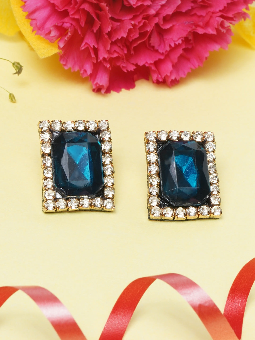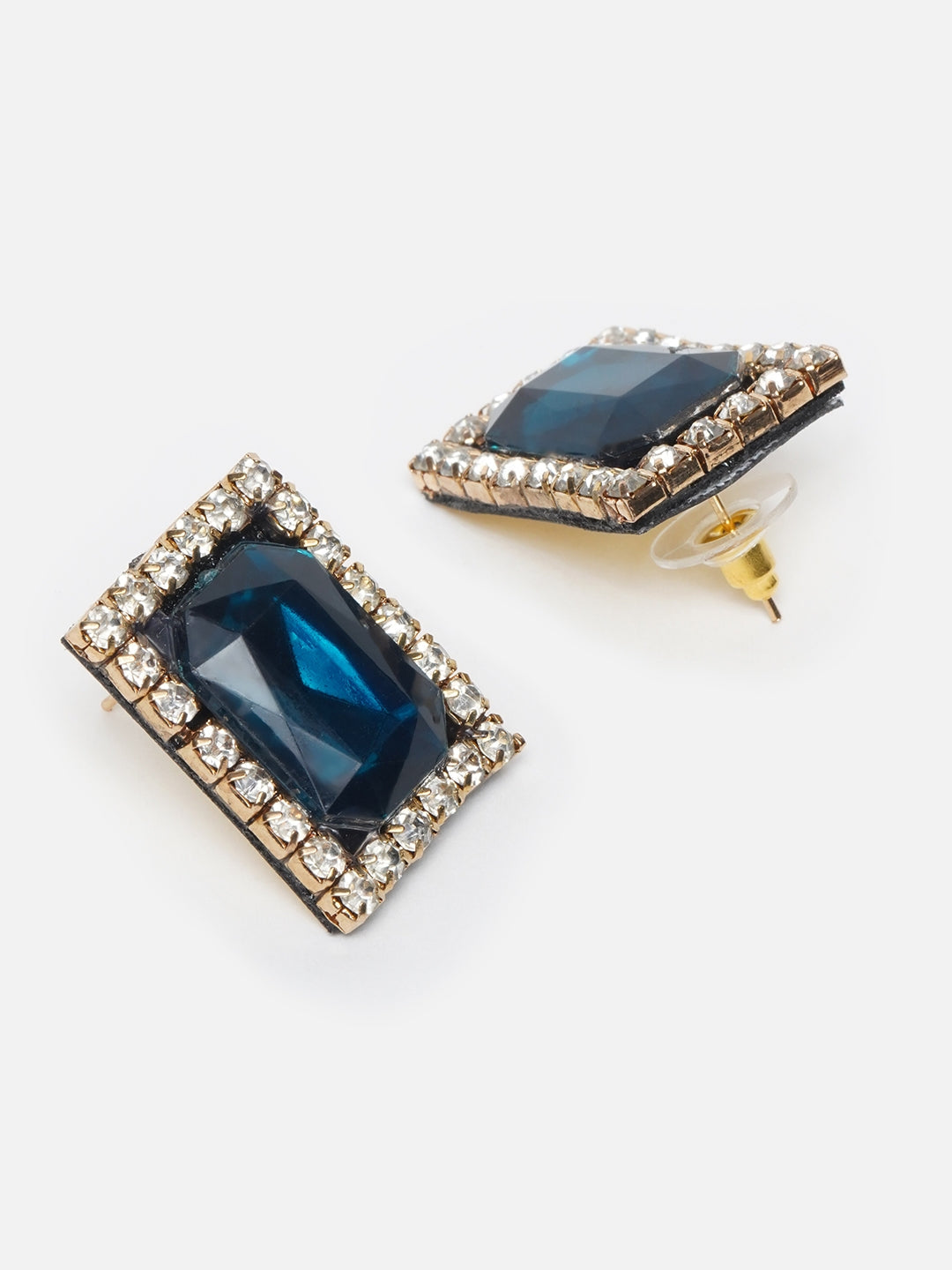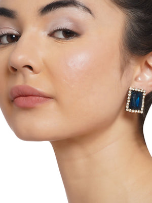 Rose Gold-Plated Navy Blue & Rose Gold Fabric Handcrafted Contemporary Studs