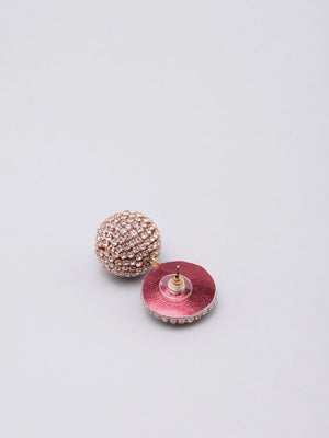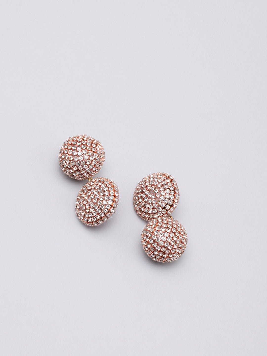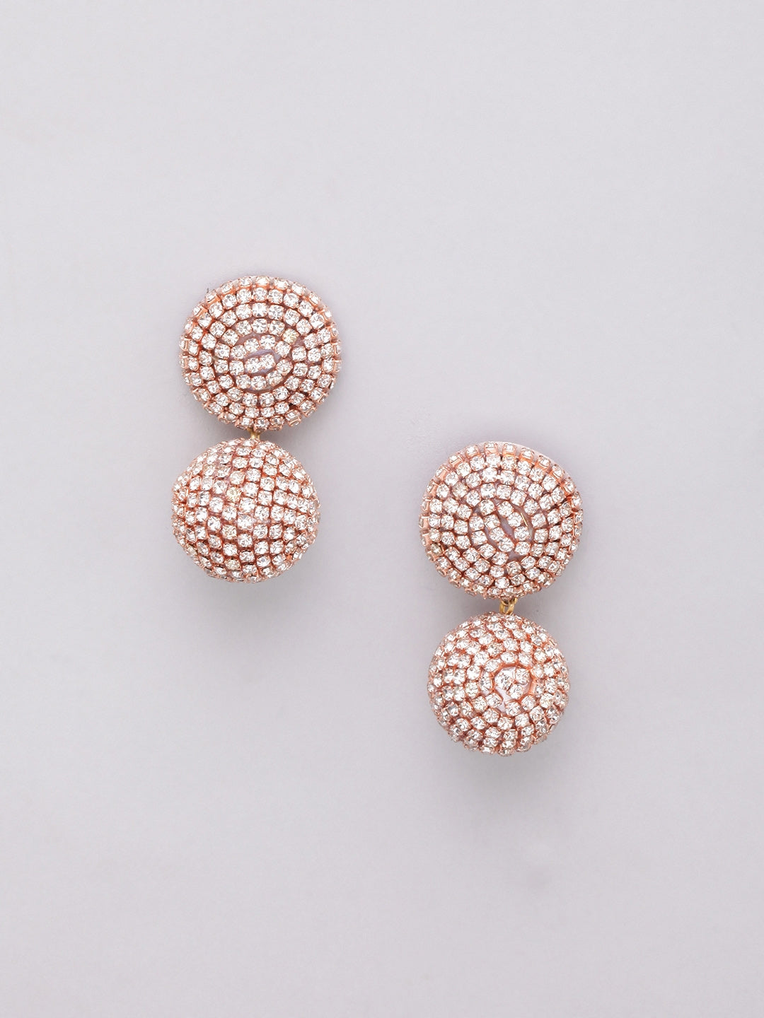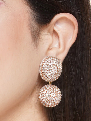 Rose Gold-Plated Rhinestone Studded Circular Drop Earrings
