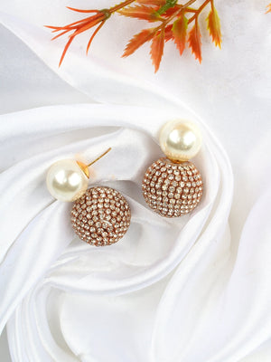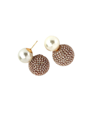 Rose Gold-Plated Rose Gold & White Rhinestone Studded Contemporary Brass Studs