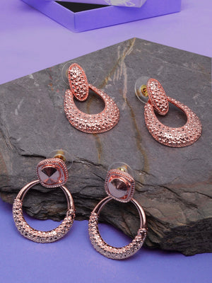Set Of 2 Rose Gold-Plated Contemporary Drop Earrings