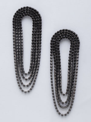 Silver-Plated Black Chain Drop Earrings