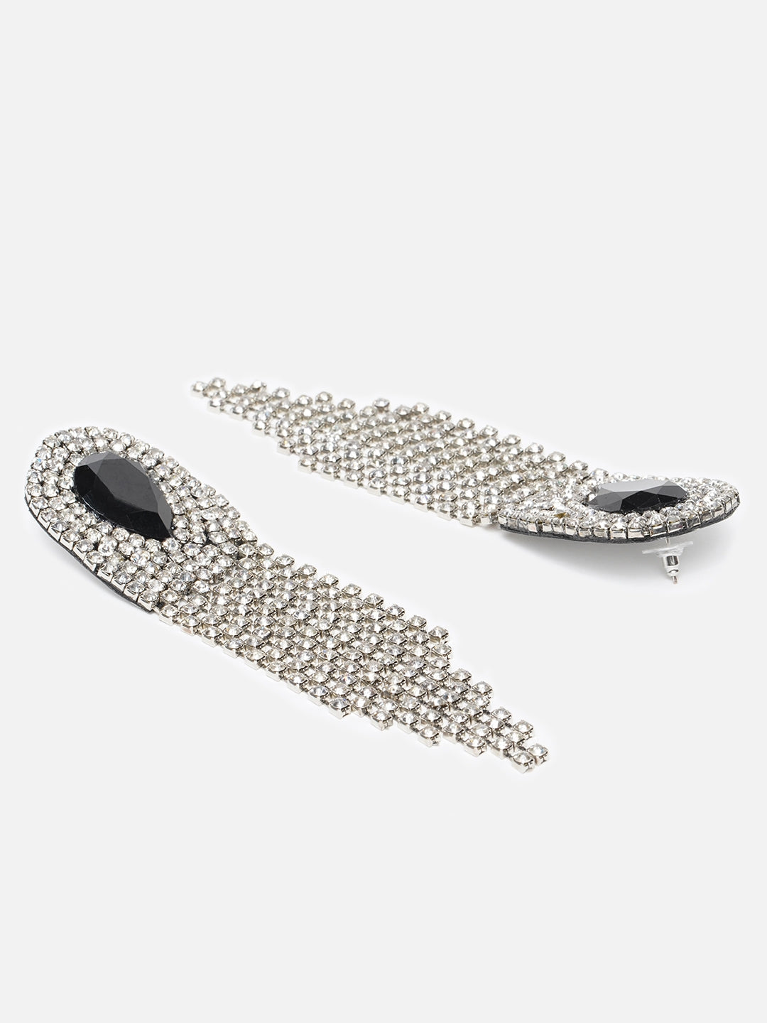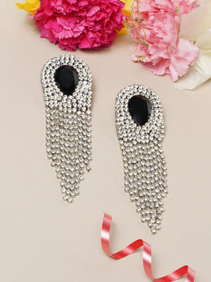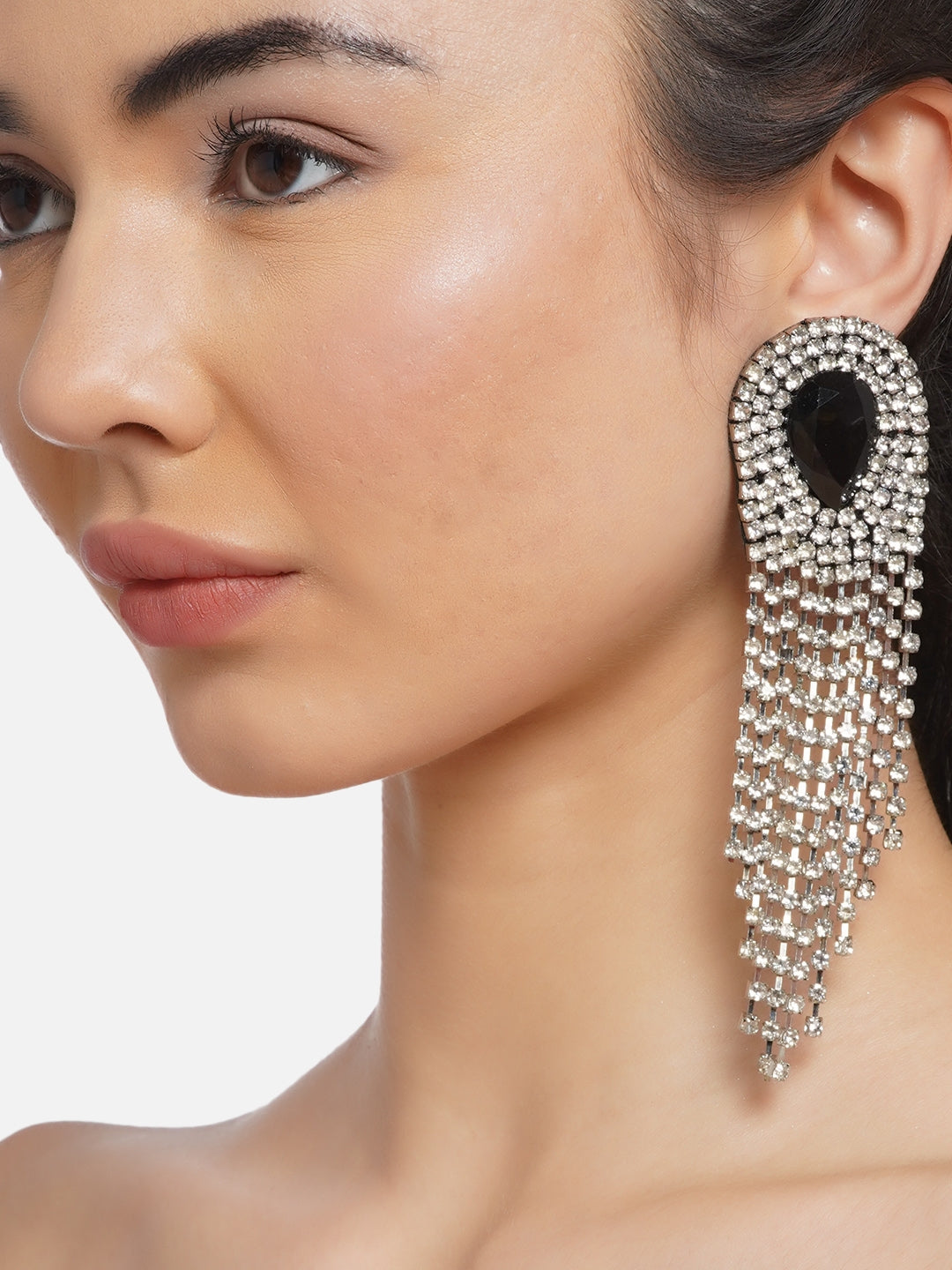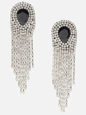 Silver-Plated Black & Transparent Fabric Handcrafted Contemporary Drop Earrings