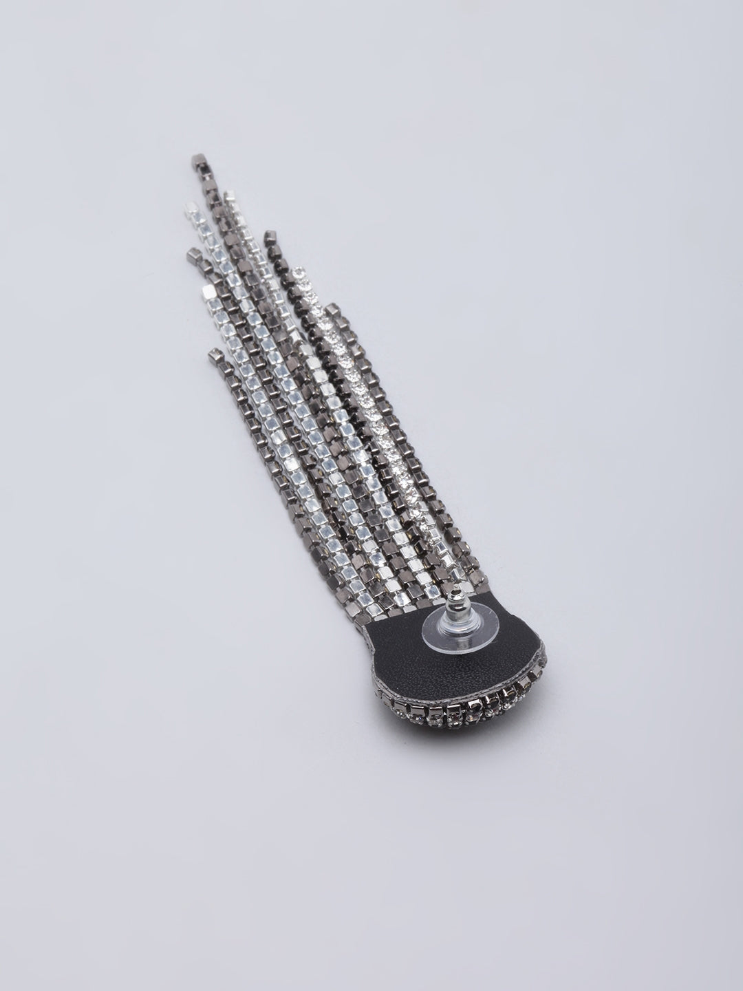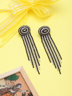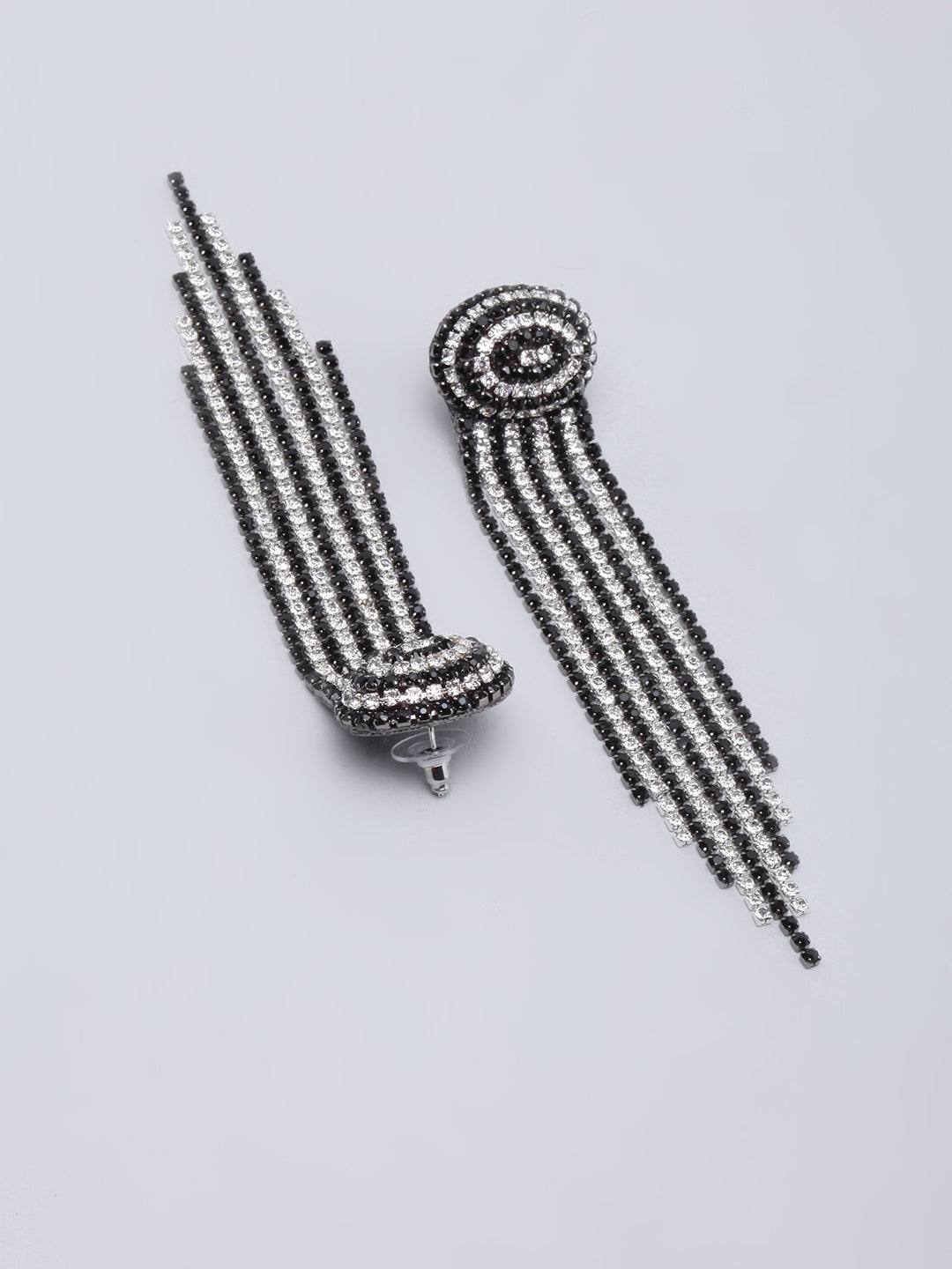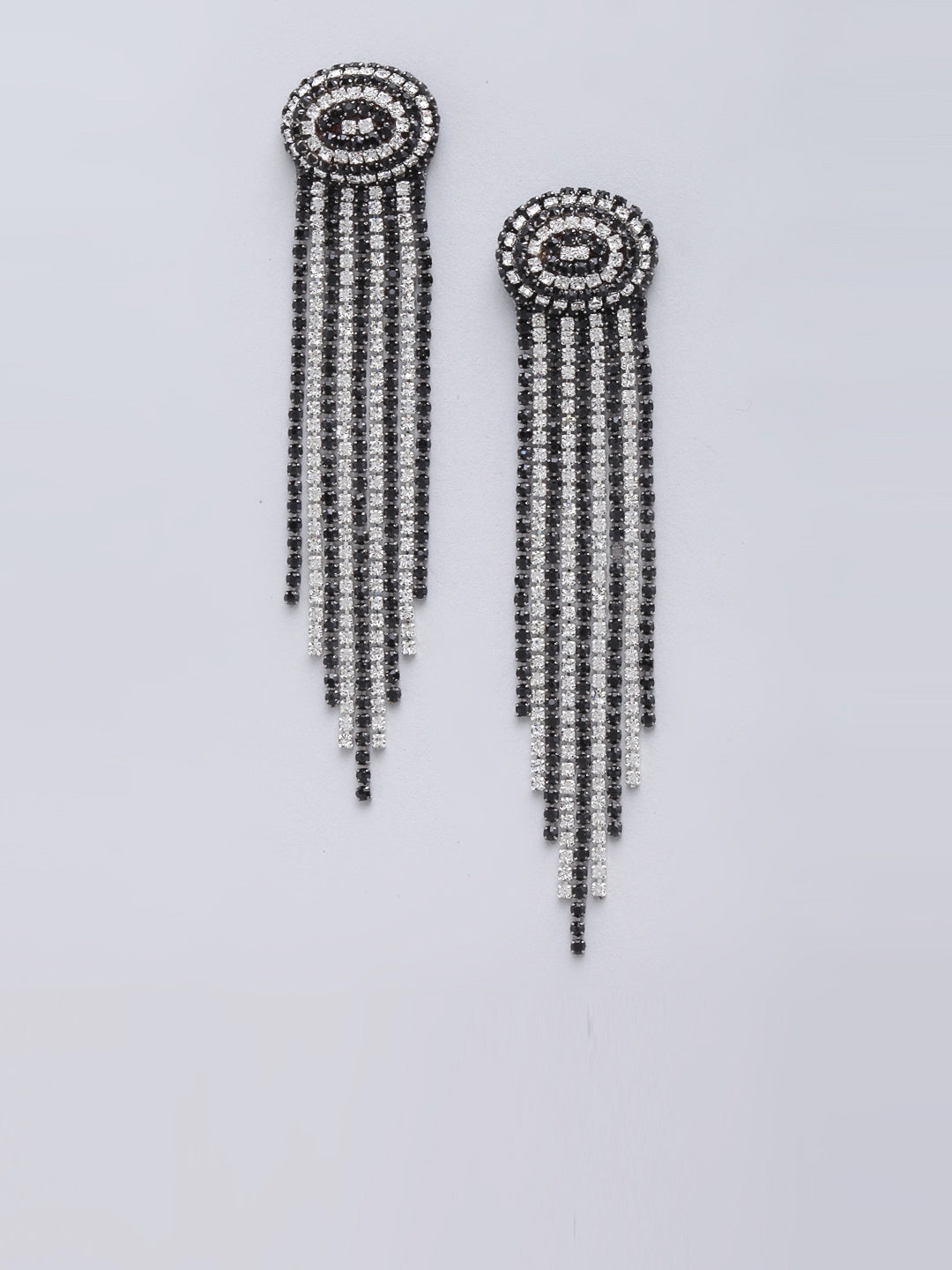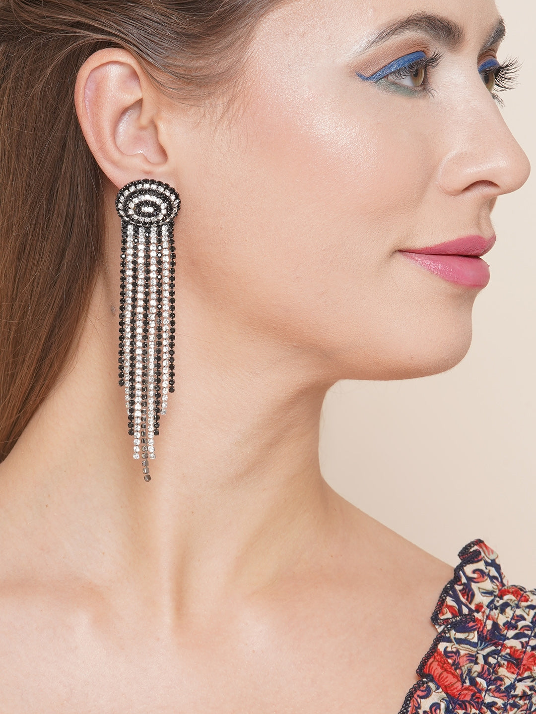 Silver-Plated Black & Transparent Rhinestone Studded Drop Earrings