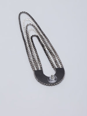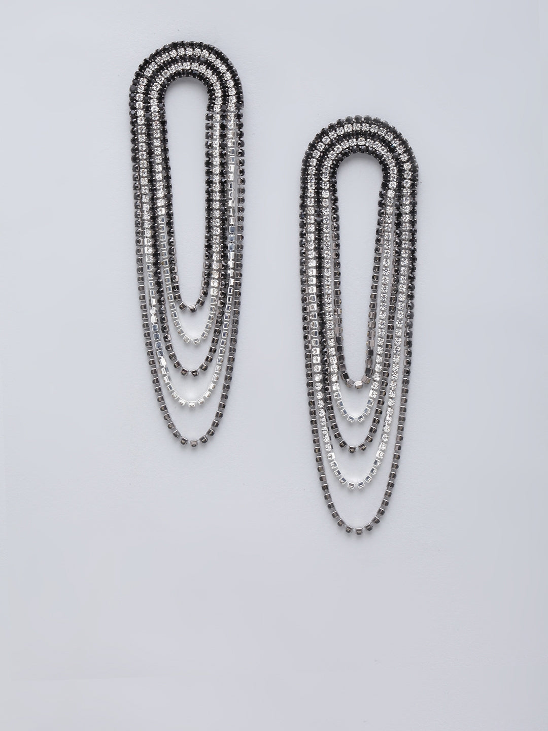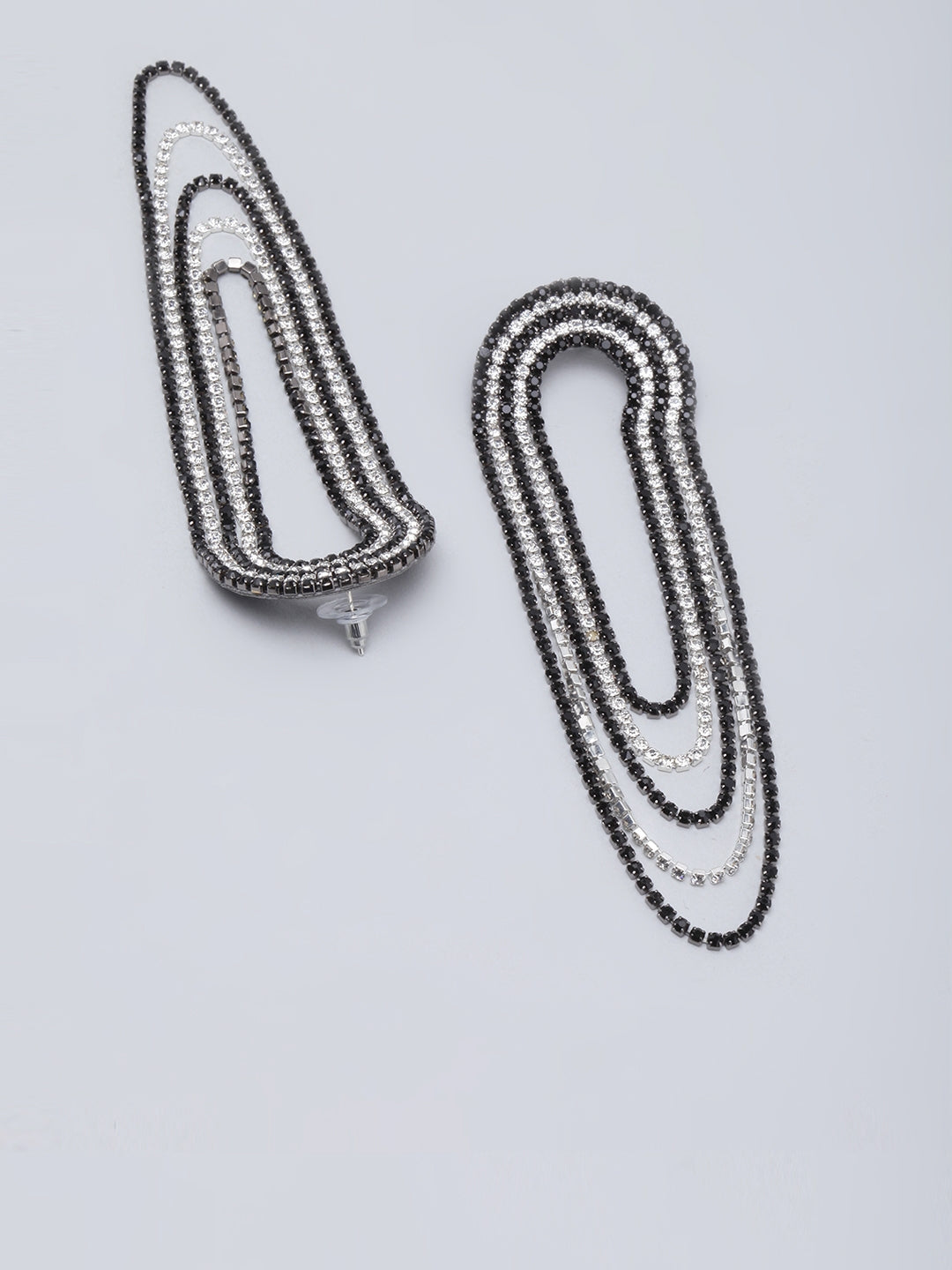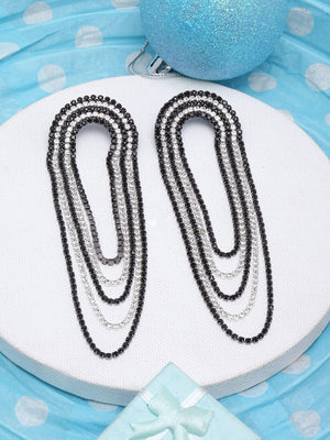 Silver-Plated Black & Transparent Rhinestone Studded Drop Earrings
