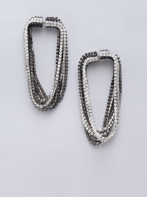 Silver-Plated Black & Transparent Rhinestone Studded Drop Earrings