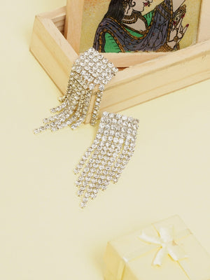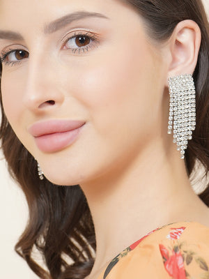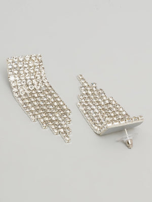 Silver-Plated CZ-Studded Dangler Earrings