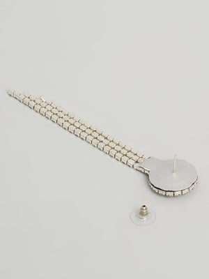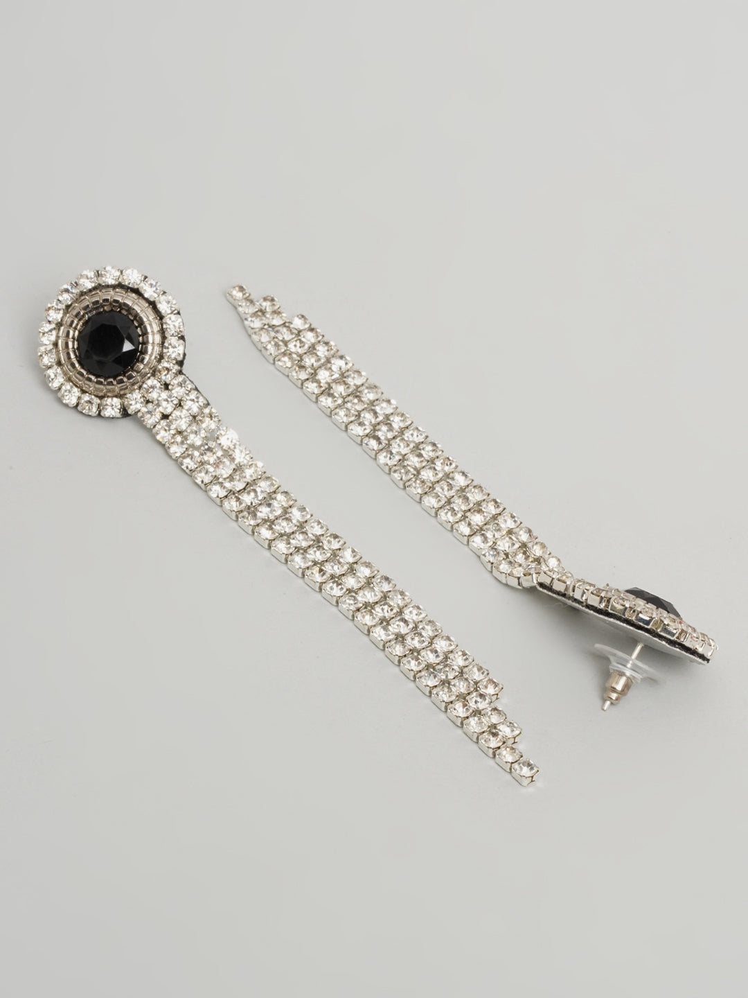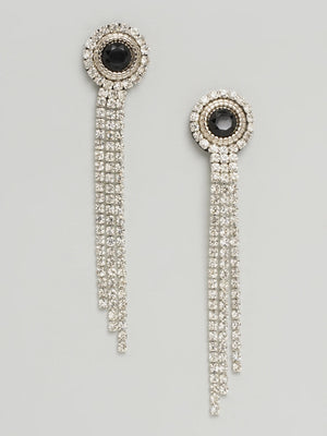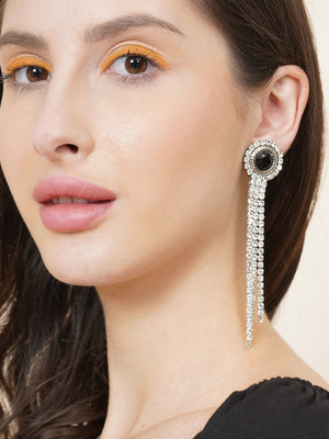 Silver-Plated CZ-Studded Black Stone Dangler Earrings