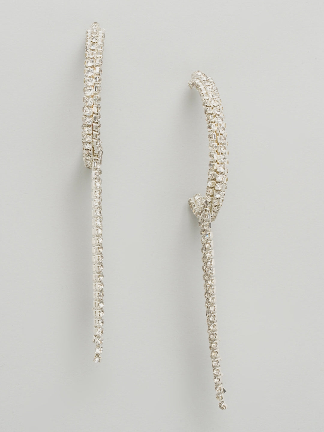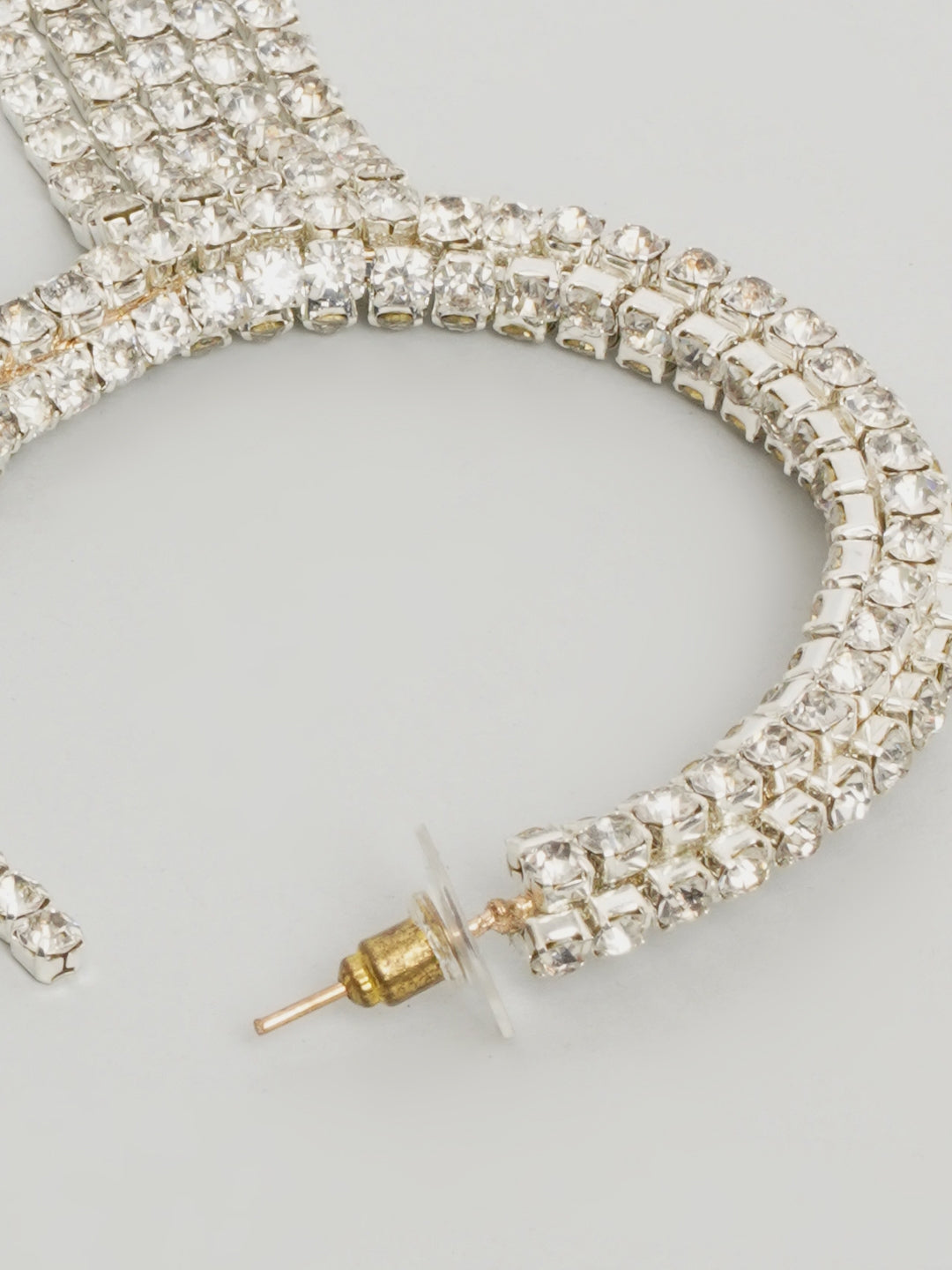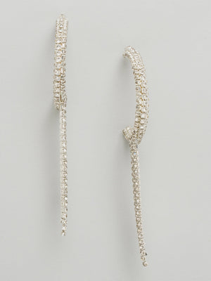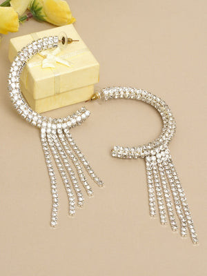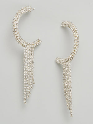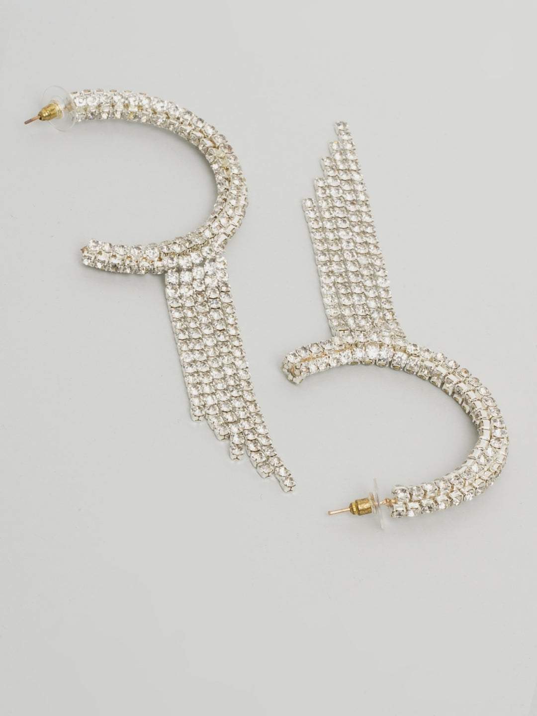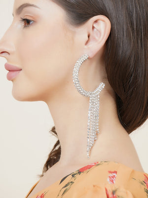 Silver-Plated CZ-Studded Hoop & Dangler Fusion Earrings