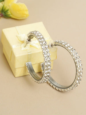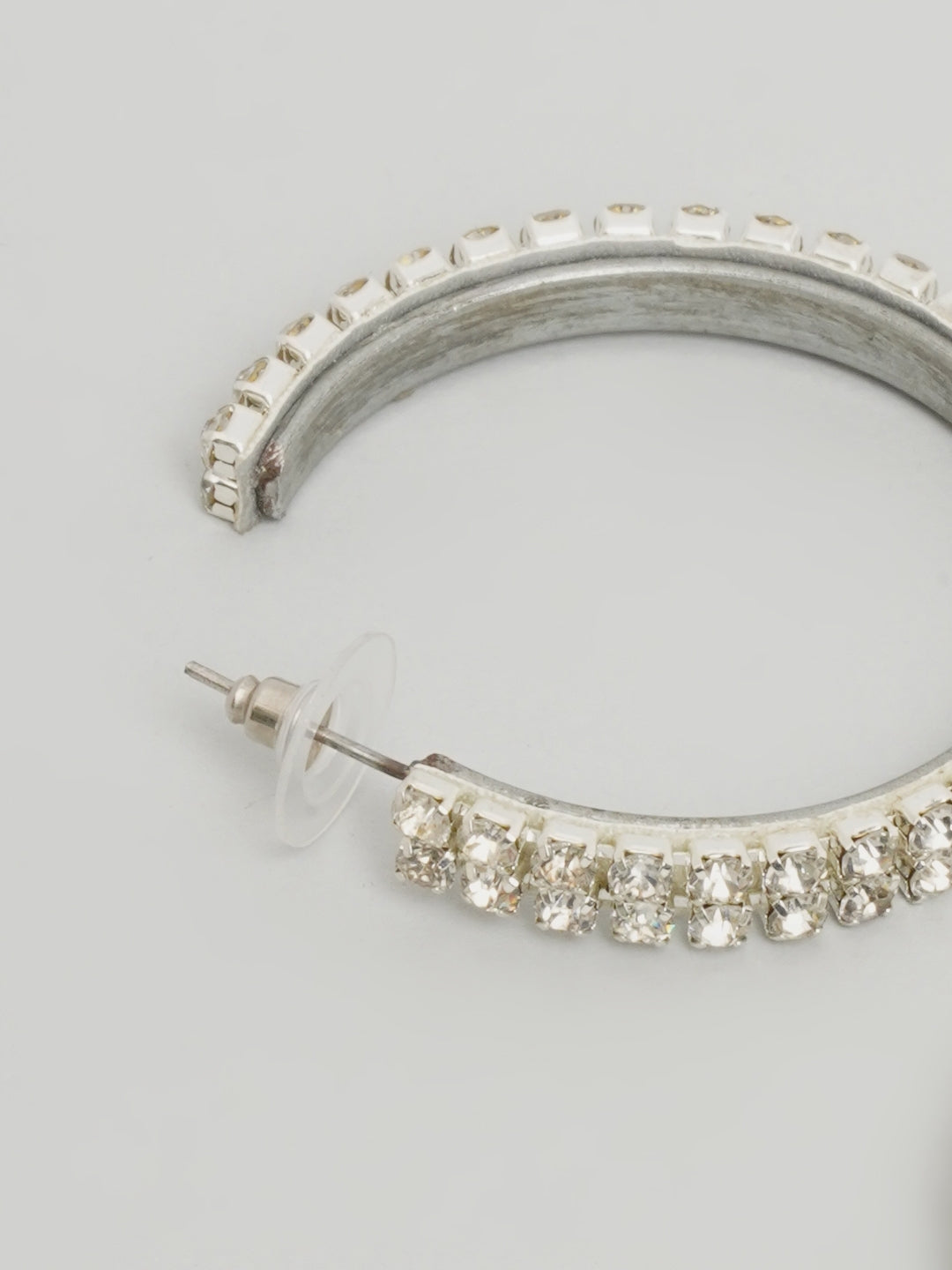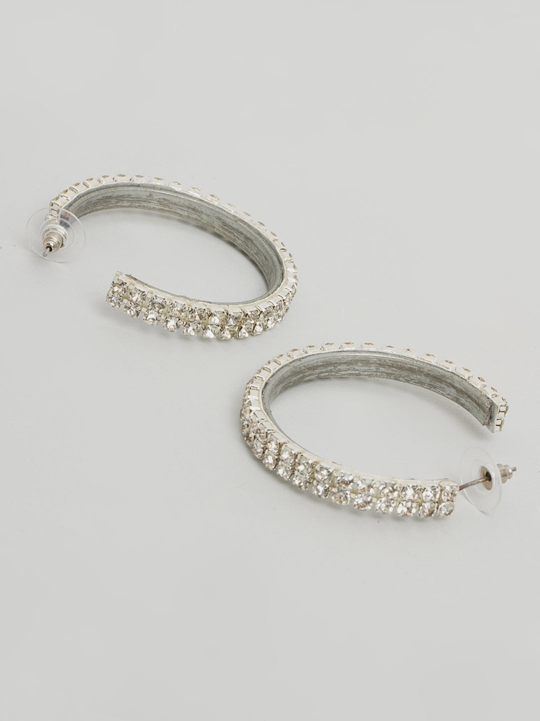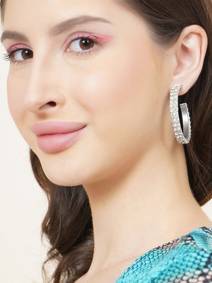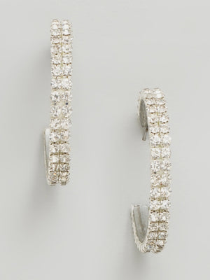Silver-Plated CZ-Studded Half Hoop Earrings