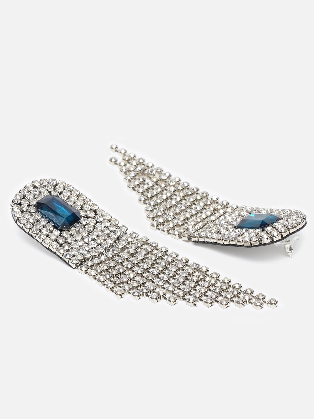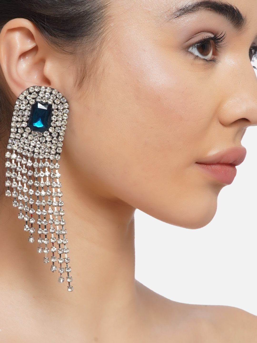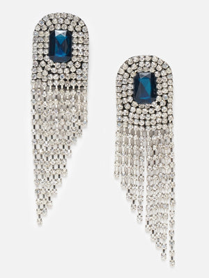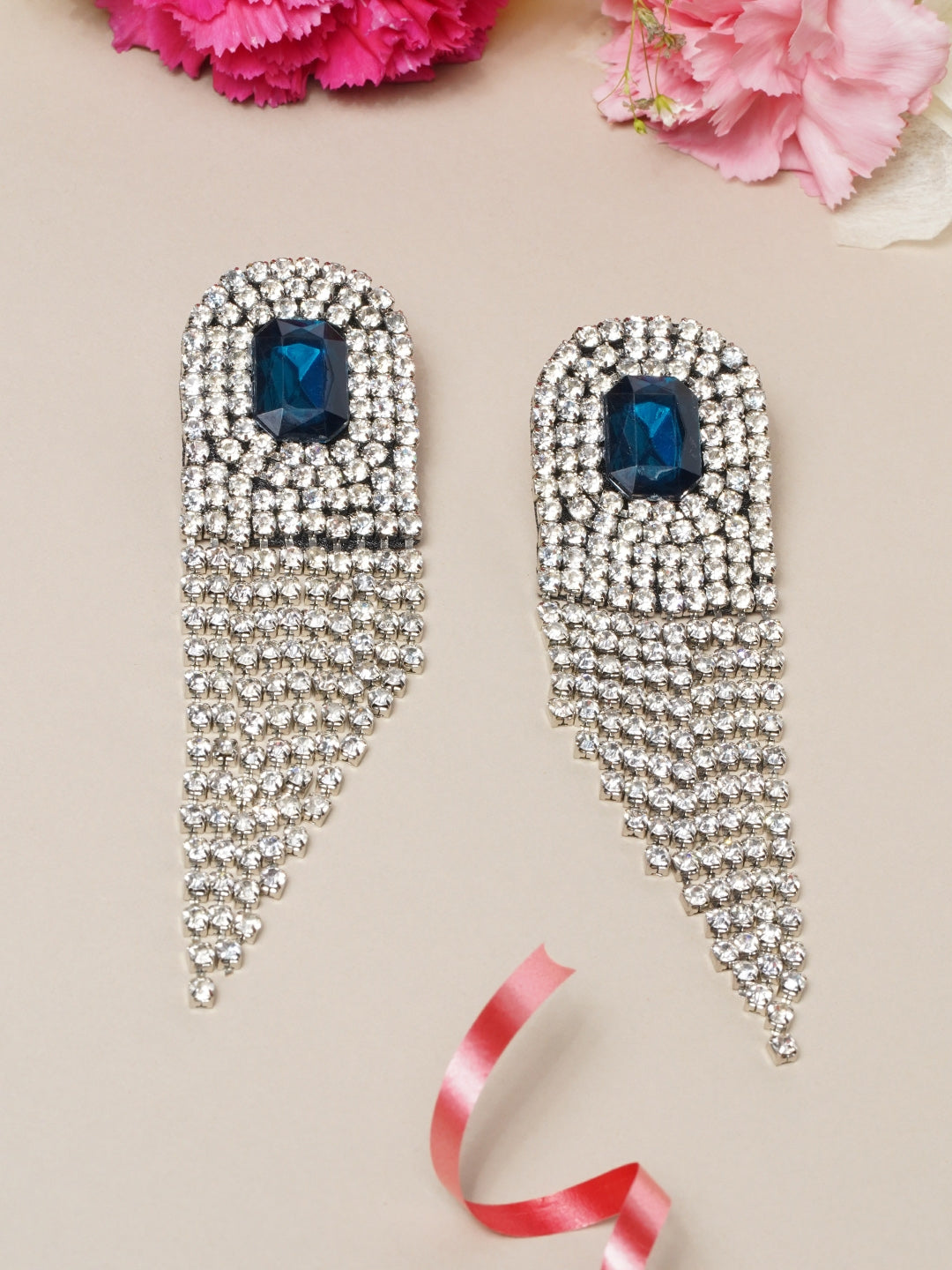 Silver-Plated Navy Blue & Transparent Fabric Handcrafted Contemporary Drop Earrings